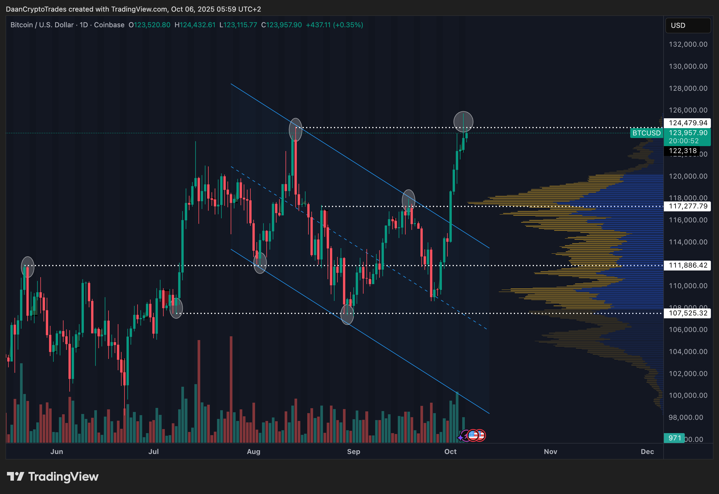 “Ik zou de prijs niet willen zien verliezen die $ 117k- $ 118k opnieuw verliest. Dit was ongeveer het middenbereik en een zeer hoog volume-gebied,” zei Daan Crypto Trades in zijn X Update op maandag.