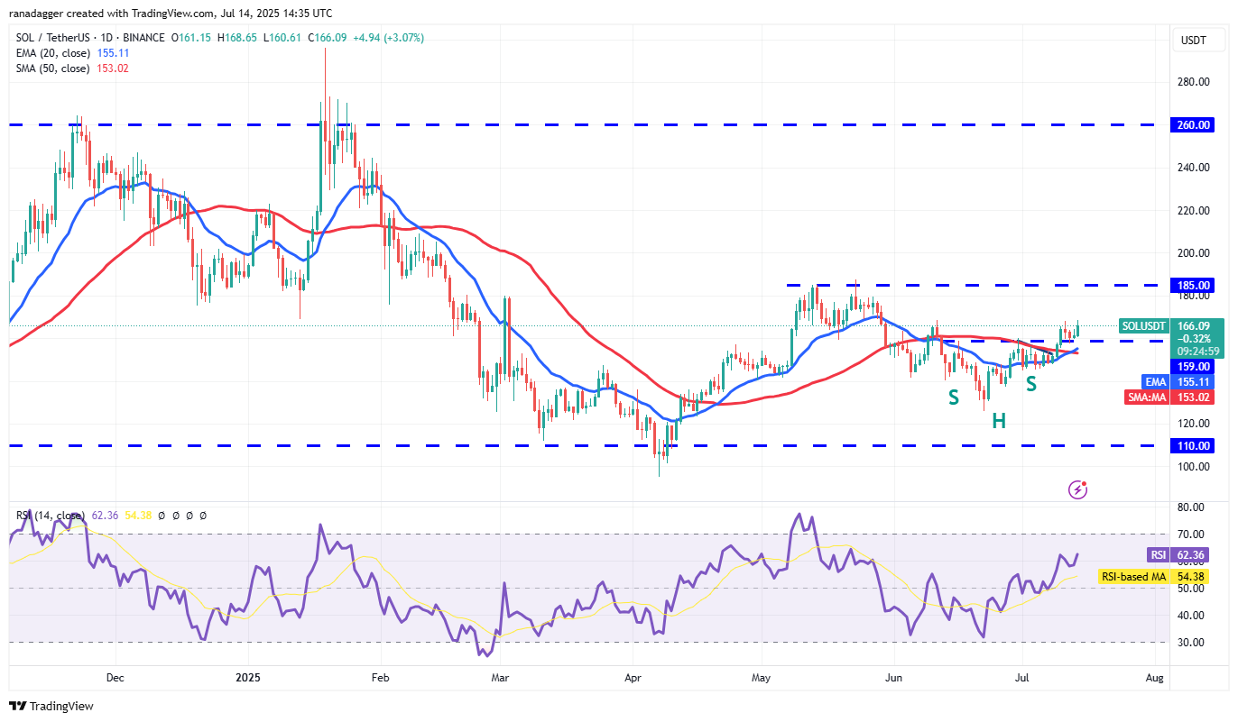 Solana (SOL) voltooide een bullish omgekeerd H&S patroon op een dichtbij boven $ 159 op donderdag, en de Bulls verdedigden met succes de hertest van het breakout -niveau op zaterdag.