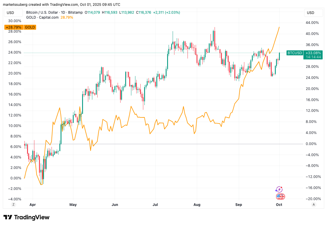 Bitcoin en goud in stap met BTC -prijssprong, gericht op $ 117.000 volgende