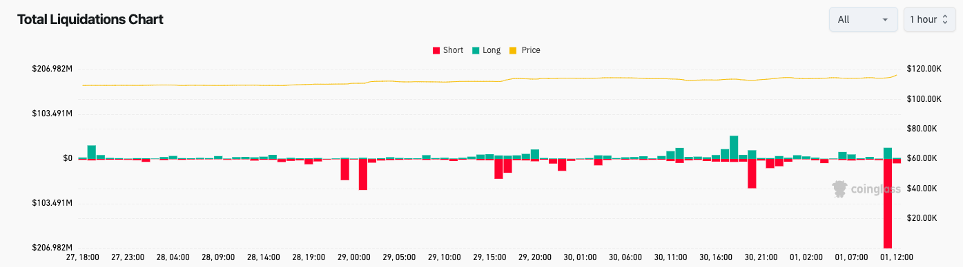 Screenshot van cryptoliquidaties Bron: Coinglass