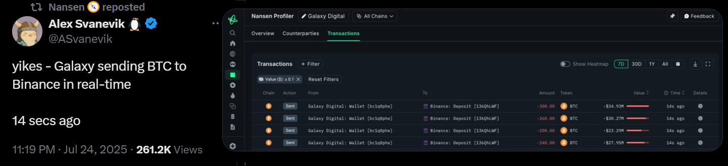 Bitcoin -derivaten laten zien dat beleggers niet bijzonder geïnteresseerd zijn in het kopen van bijna $ 116.000, maar sinds de high niet in paniek raakt door de daling van de 7 procent. Dit is geruststellend, gezien het feit dat het bedrijf dat een deel van zijn BTC Holdings heeft verkocht op Galaxy DigitalAlex Svanevik, CEO van Nansen.