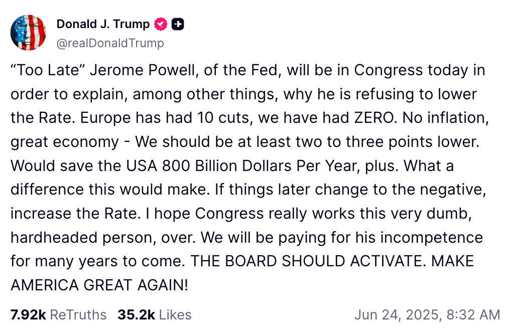Terwijl Jerome Powell, de voorzitter van de Fed en vele andere Fed -functionarissen, vastberaden blijven in hun weigering om de rentetarieven te verlagen, is de Amerikaanse president Donald Trump deze beslissingen blijven bekritiseren.