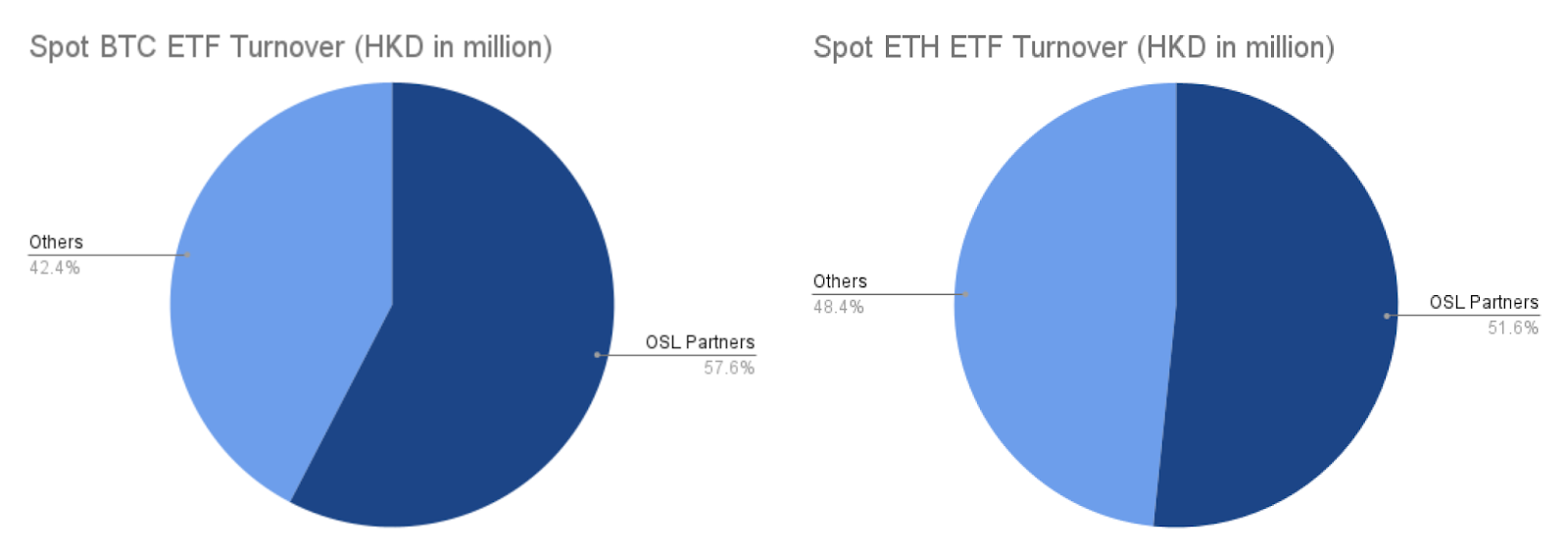 ChinaAMC, Harvest Global en OSL zijn twee van de leidende ETF's in China. De gecombineerde sterkte van hun twee bedrijven is 2849 BTC. Dit vertegenwoordigt 58% marktaandeel.