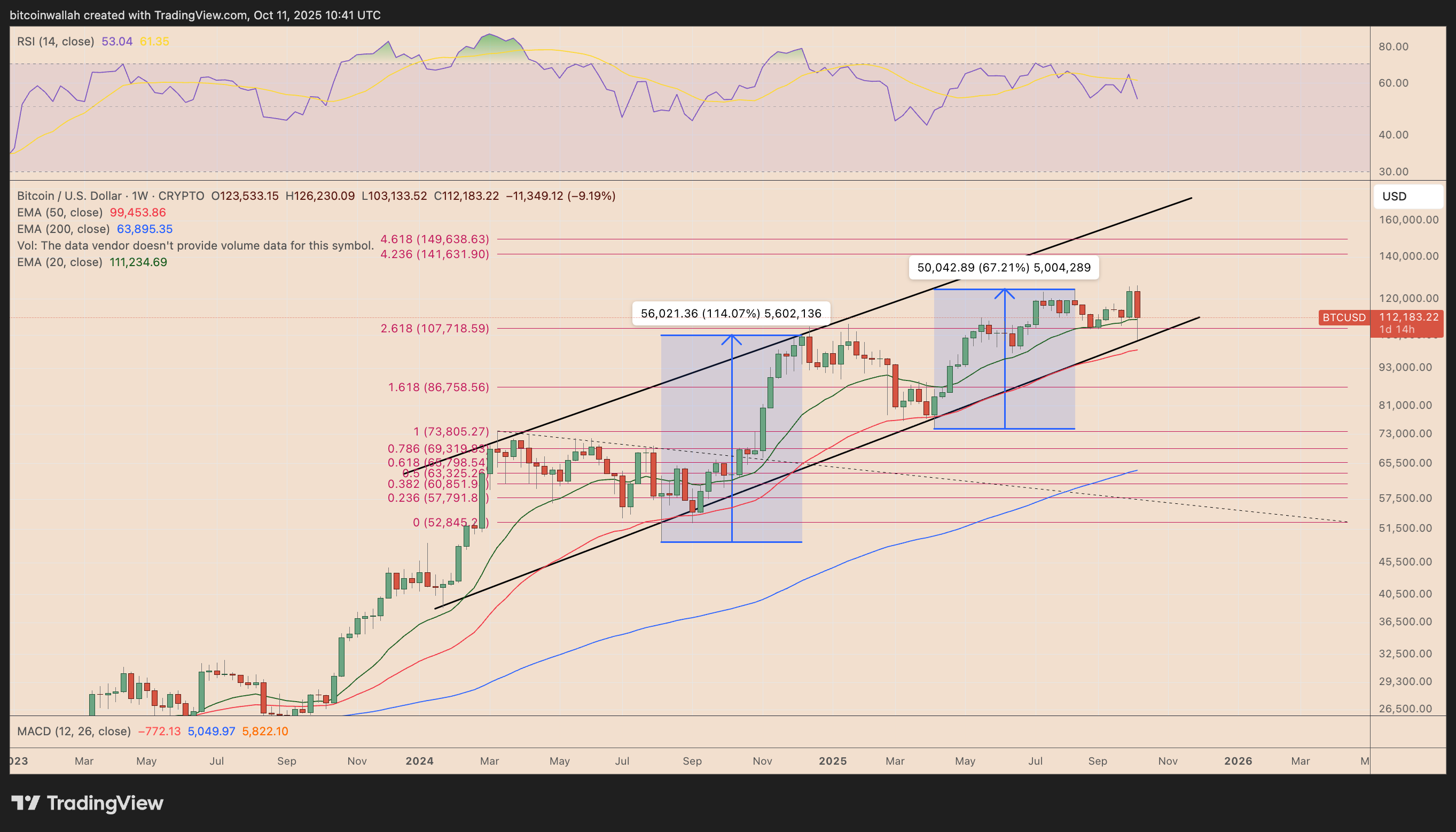 Analisten zeggen dat het voortschrijdend gemiddelde van 20 weken (20 weken MA), dat bijna 111.000 dollar bedraagt, nauwlettend in de gaten moet worden gehouden. Michaël van de Poppe.