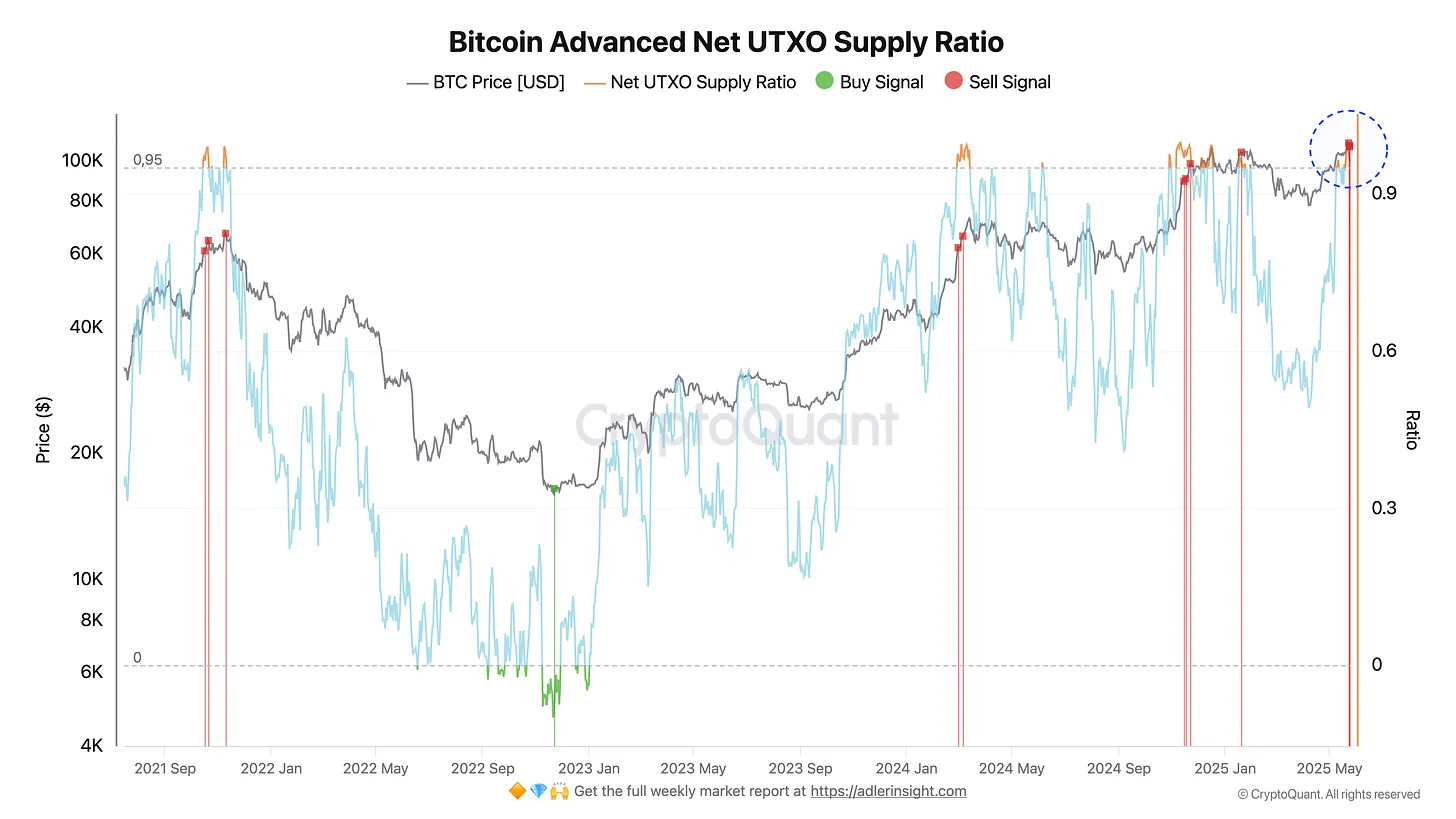 Bitcoin Advanced Net-UTXO Supply Ratio Chart. Bron: cryptoquant