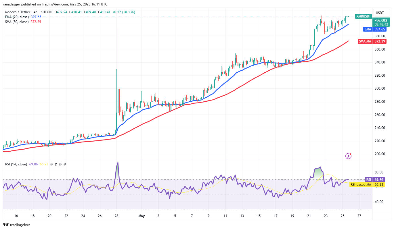 De scherpe prijsstijging in de afgelopen dagen hield de RSI boven de zone van overbought, wat aangeeft dat stieren nog steeds de controle hebben. Als kopers de prijs van $ 412 of hoger blijven houden, kunnen de XMR/USDT -paren hun opwaartse trend hervatten naar $ 456.