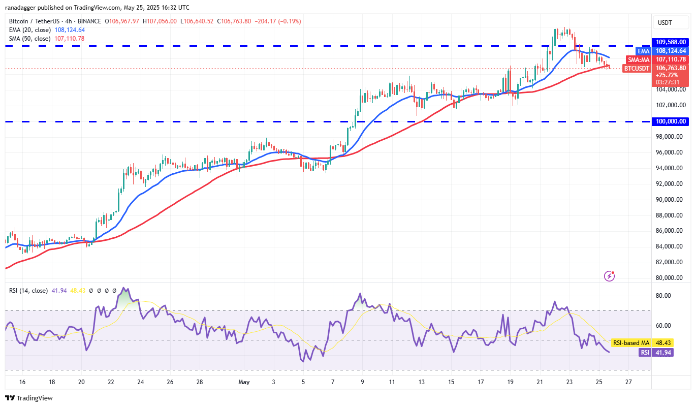 Bitcoin daalde onder het break-out niveau van $ 109.588 op de 23e, en op de 24e stopten de beren dat de Bulls de prijs boven de overheadsteun duwden.