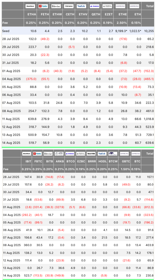 BlackRock’s iShares Bitcoin Trust toegevoegd. De grootste Amerikaanse bitcoin-spot-uitwisseling (ETF) in de VS, iShares Bitcoin Trust wordt beheerd door BlackRock. Meer dan $ 500 miljoen in BTC Het is donderdag, de ether is donderdagEth() Toegevoegde hetzelfde bedrag, tartende kortetermijntrends tarten.