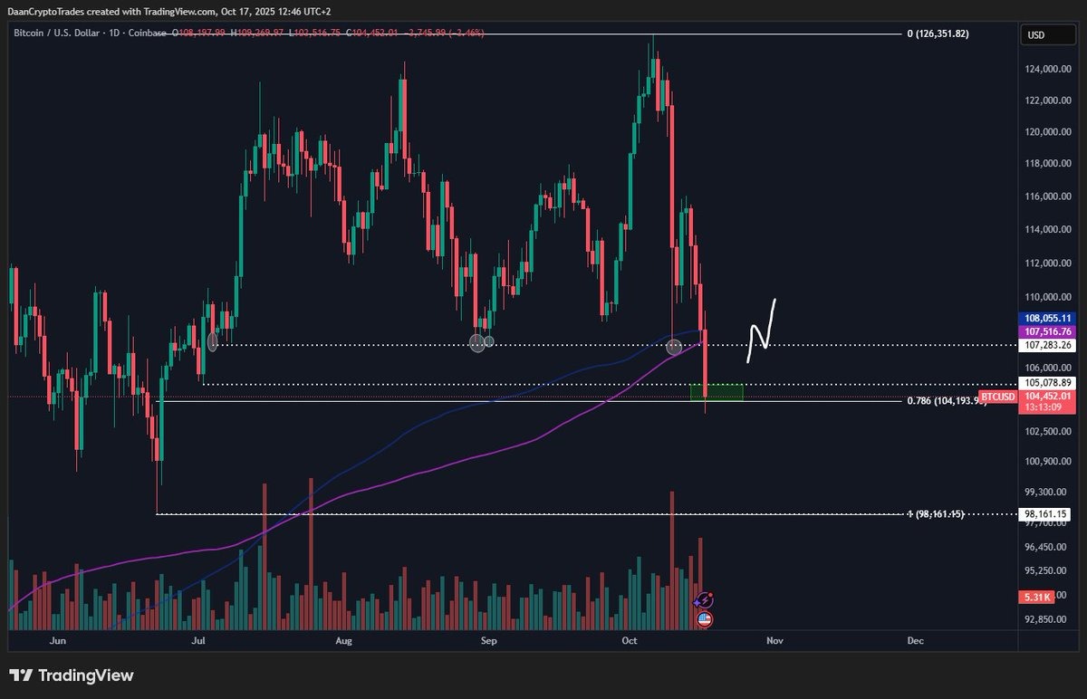 Price “testt nu het 0,786 fibonacci-retracementniveau rond de $104.000”, analist Daan Crypto Trades gezegd Vrijdag postte X dat het verliezen van het niveau een teleurstelling zou zijn. breng de dieptepunten van juni op $98.000 in beeld.