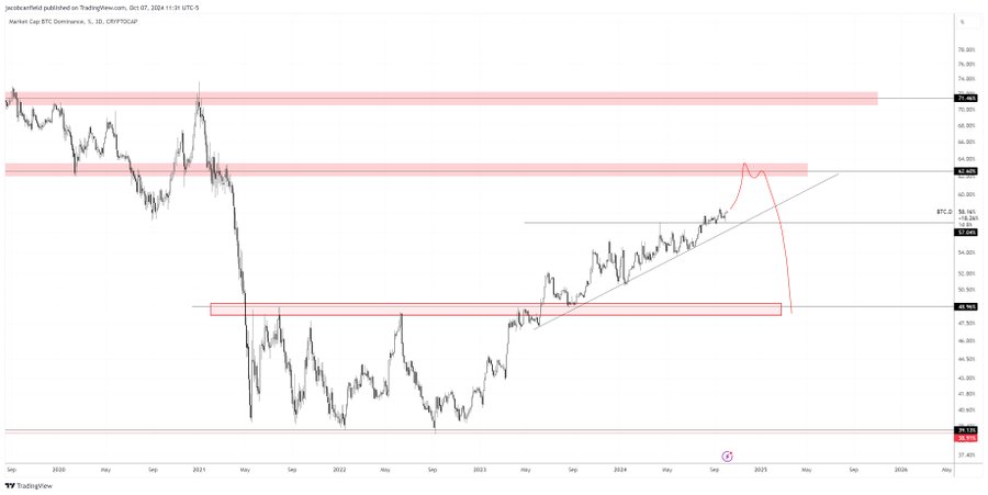 De afgelopen maanden waren een drukke tijd voor het bedrijf. Bitcoins [BTC] Dominantie [BTC.D] heeft aanhoudende afwijzing ervaren op een weerstandsniveau van $58.