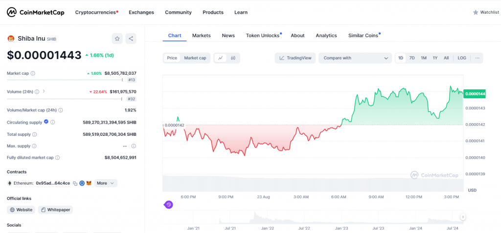 Shiba Inu was ten tijde van het ter perse gaan handel De prijs van de munt is in slechts 24 uur met 1,54% gestegen naar $0,0000144.