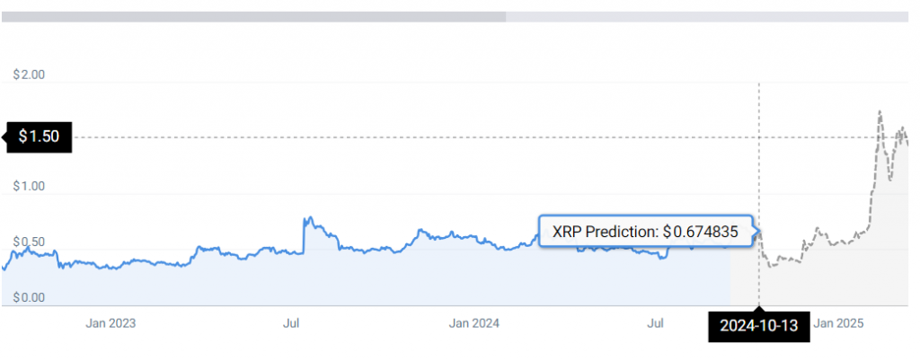 “Volgens onze huidige XRP-prijsvoorspelling zal de prijs van XRP naar verwachting met 19,98% stijgen en $0,674835 bereiken op 13 oktober 2024. Volgens onze technische indicatoren is het huidige sentiment bullish, terwijl de Fear & Greed Index 32 (angst) laat zien. XRP registreerde 15/30 (50%) groene dagen met 4,31% prijsvolatiliteit in de afgelopen 30 dagen. Op basis van de XRP-voorspelling is het nu een goed moment om XRP te kopen.”