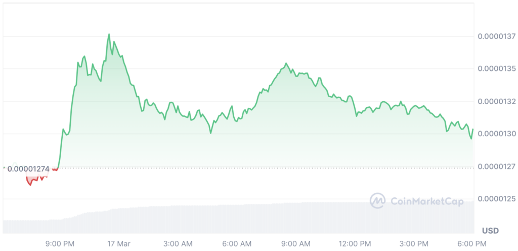 De op een na grootste meme-munt werd op het moment dat dit artikel werd geschreven, verhandeld voor $ 0,00001304. Het volgt een stijging van 2,35 procent in de afgelopen 24 uur. Markten waren geschokt omdat de meerderheid van de activa verliezen leed.