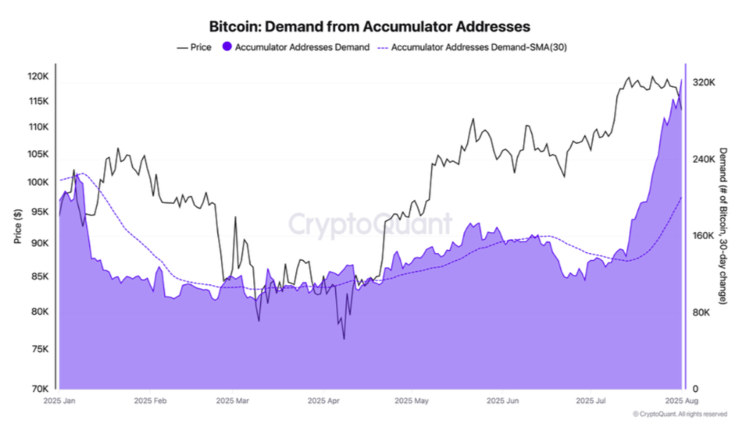 “Momenteel blijft de vraag duidelijk positief, met ongeveer 160.000 BTC verzameld in de afgelopen 30 dagen.”