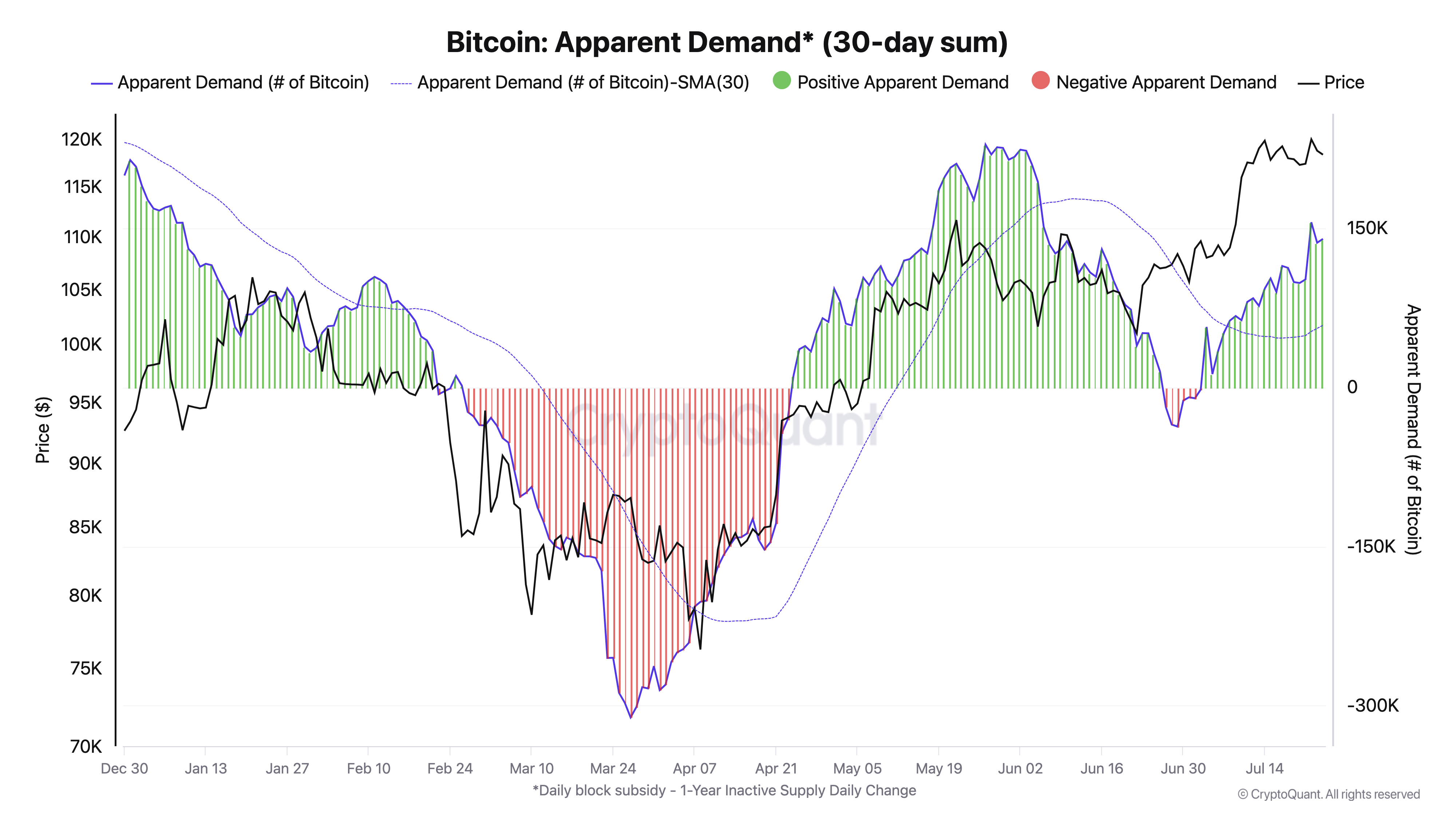 Bitcoin schijnbare vraag (bedrag van 30 dagen). Bron: cryptoquant