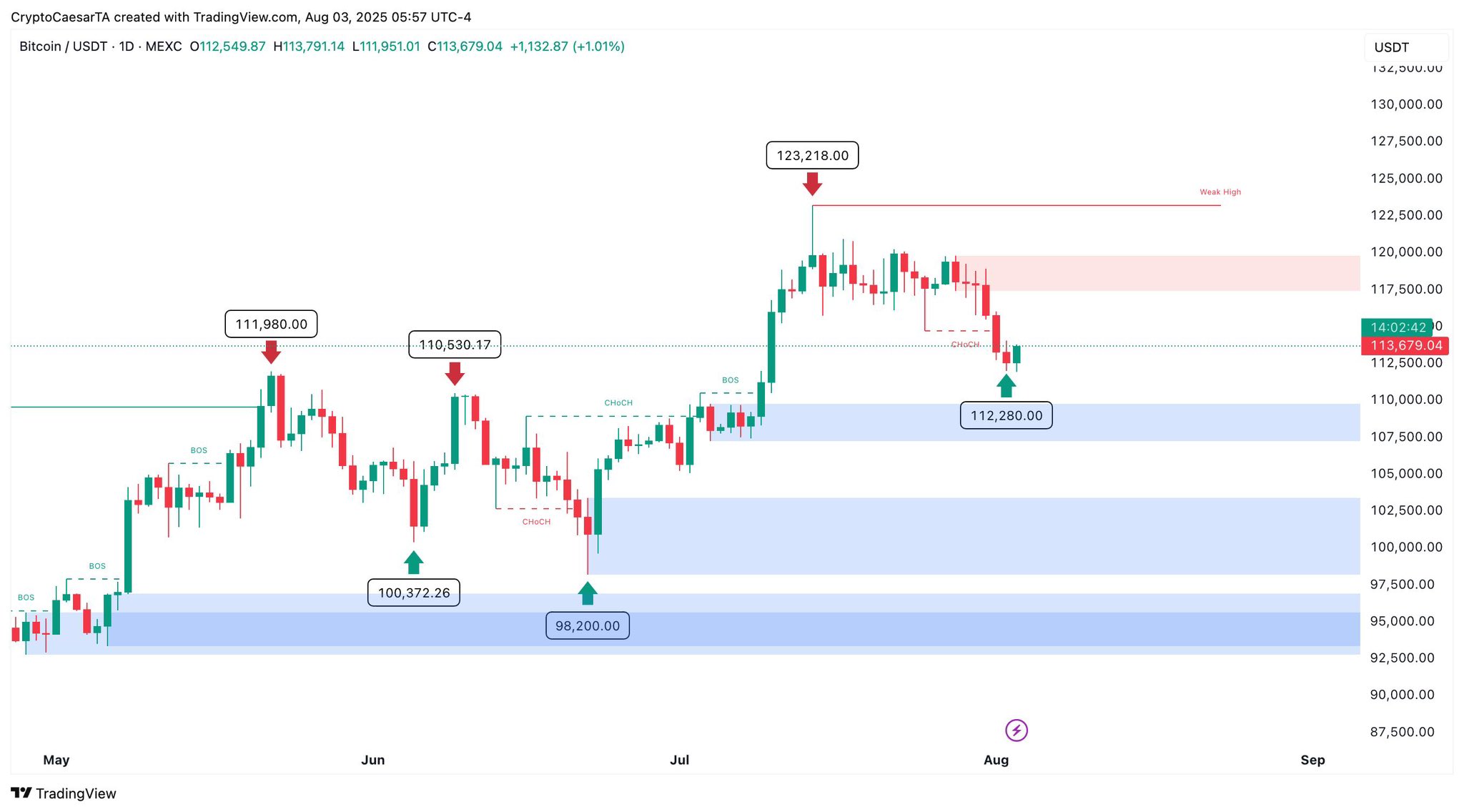 De prijs van Bitcoin fluctueert sinds deze afgelopen vrijdag onder de $ 112.000 daalde. Cointelegraph Markets Pro U kunt ook meer te weten komen over het volgende: TradingView Toont een duw naar $ 115.000.
