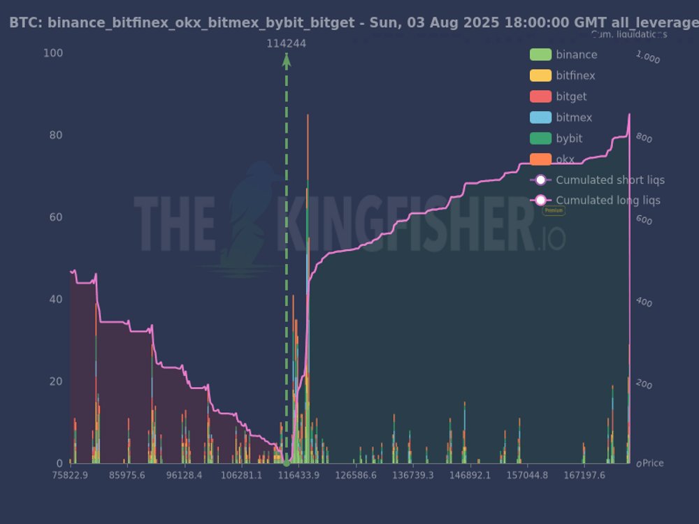 TheKingfisher, een invloedrijke commentator, analyseerde de liquiditeit van Exchange Order -boeken en identificeerde $ 116.500 als een kritiek niveau waar een korte BTC -positie zou liquideren.