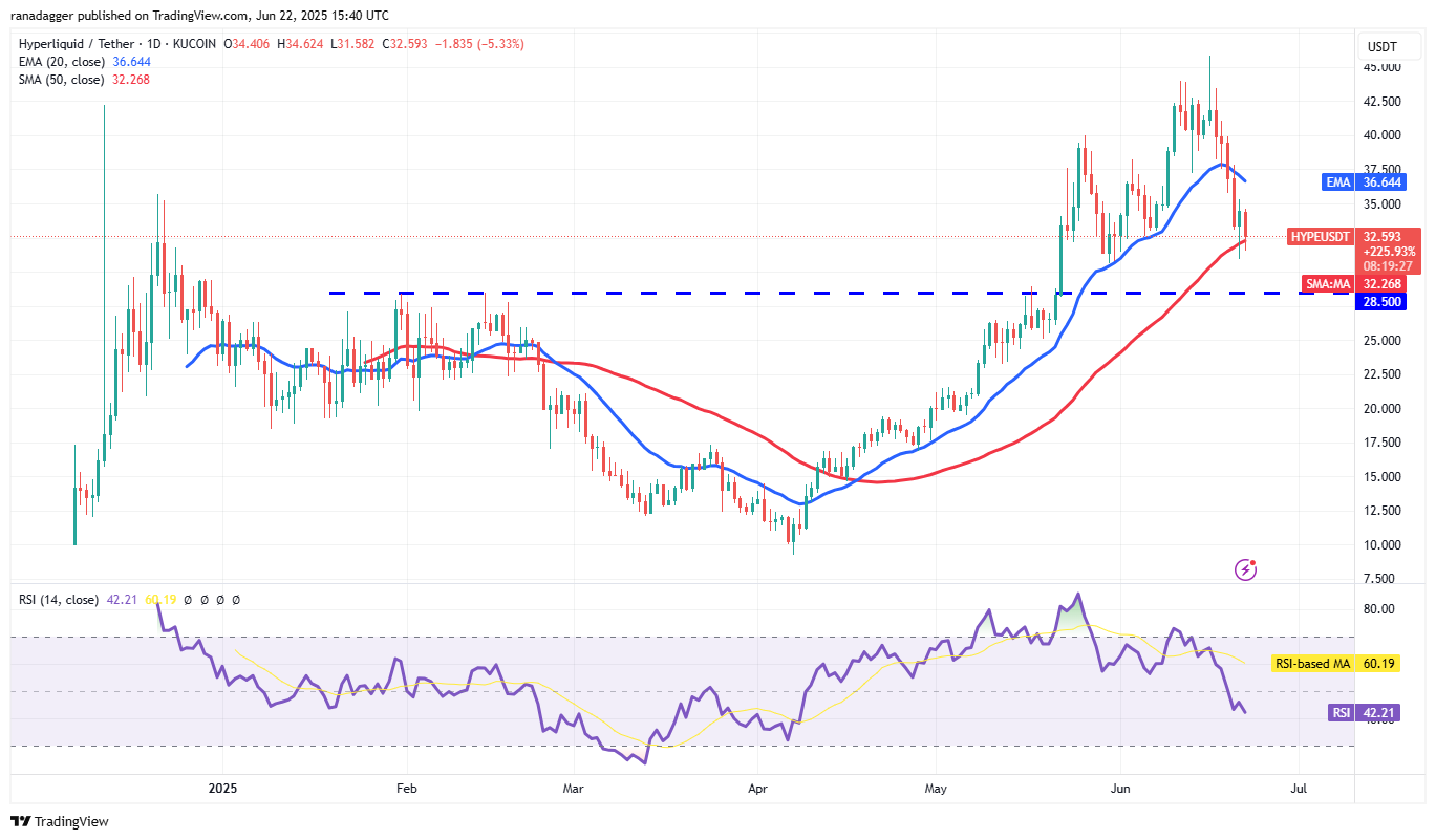 Een scherpe correctie begon in HyperLiquid na het niet bewaren van de prijs op $ 42,50. Dit was een teken dat stieren haastten om winst te maken.