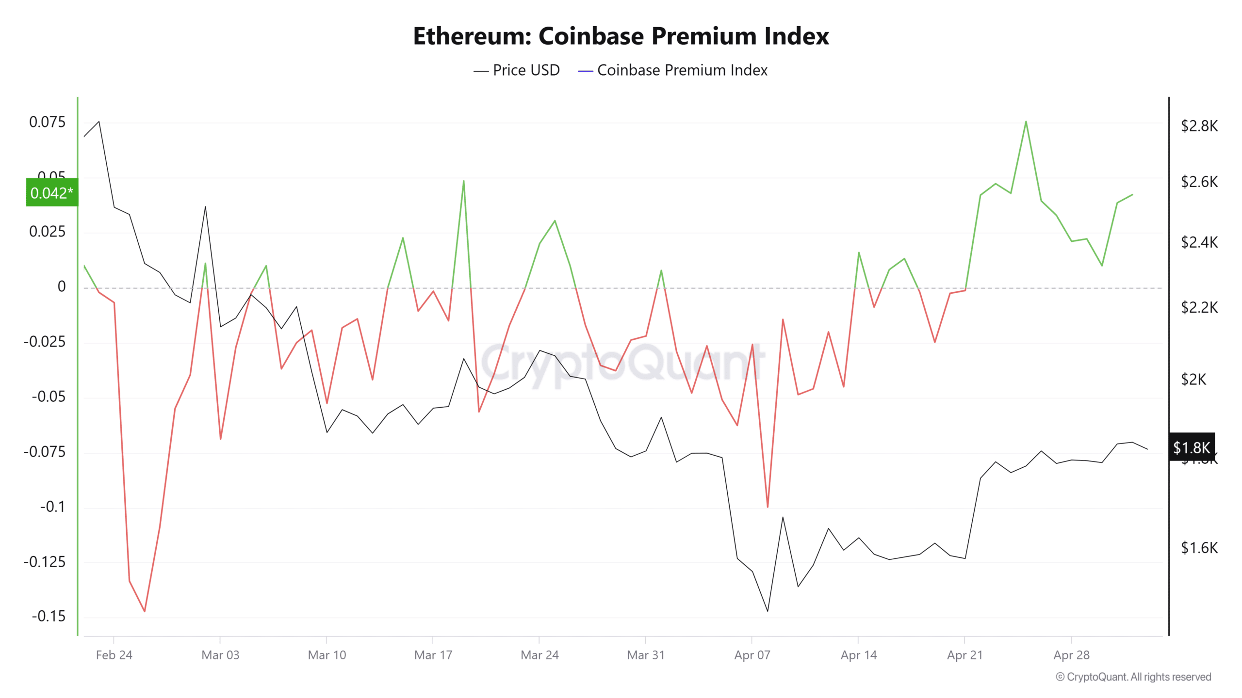 Coinbase Premium Index vertelt een interessant verhaal. Deze index wordt gebruikt om te meten of Amerikaanse handelaren kopen of verkopen.