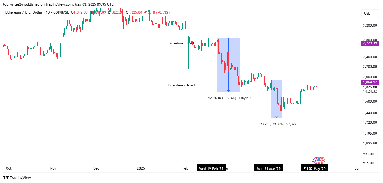 De walvisaankopen van Ethereum ter waarde van $1,33 miljard versus de uitstroom van ETF’s ter waarde van $183 miljoen – is het volgende doel van $3700?
