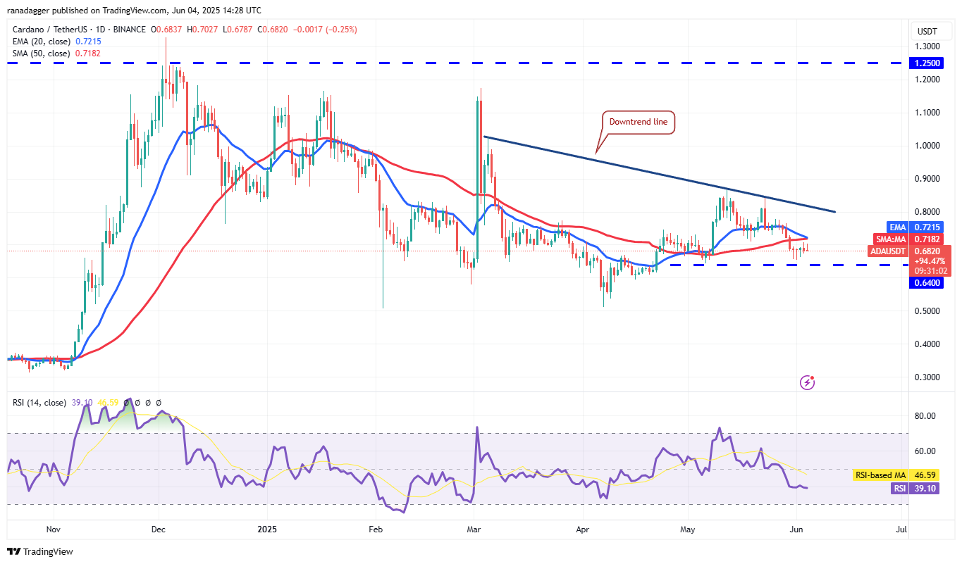 De beren gaan proberen de ADA/USDT onder $ 0,64 te laten zinken als de prijs daalt van voortschrijdende gemiddelden. Als ze slagen, kan het paar dalen tot $ 0,50 ondersteuning.