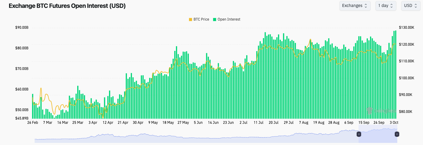 Coinglass meldde dat de totale futures open rente in alle beurzen op dezelfde dag een nieuw record van $ 88,7 miljard was.