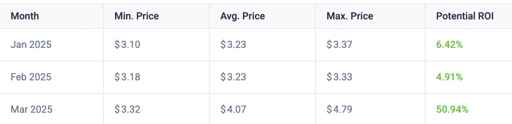 Volgens gegevens van CoinCodex zal de markt van XRP naar verwachting de komende maanden groeien. Hoewel $ 5 het doel kan zijn, kan het moeilijk zijn om dit in het eerste kwartaal te bereiken. De activa zullen naar verwachting tegen het einde van de maand een piek van $4,79 bereiken. Het vertaalt zich ook in een merkbare stijging van 50,90%.